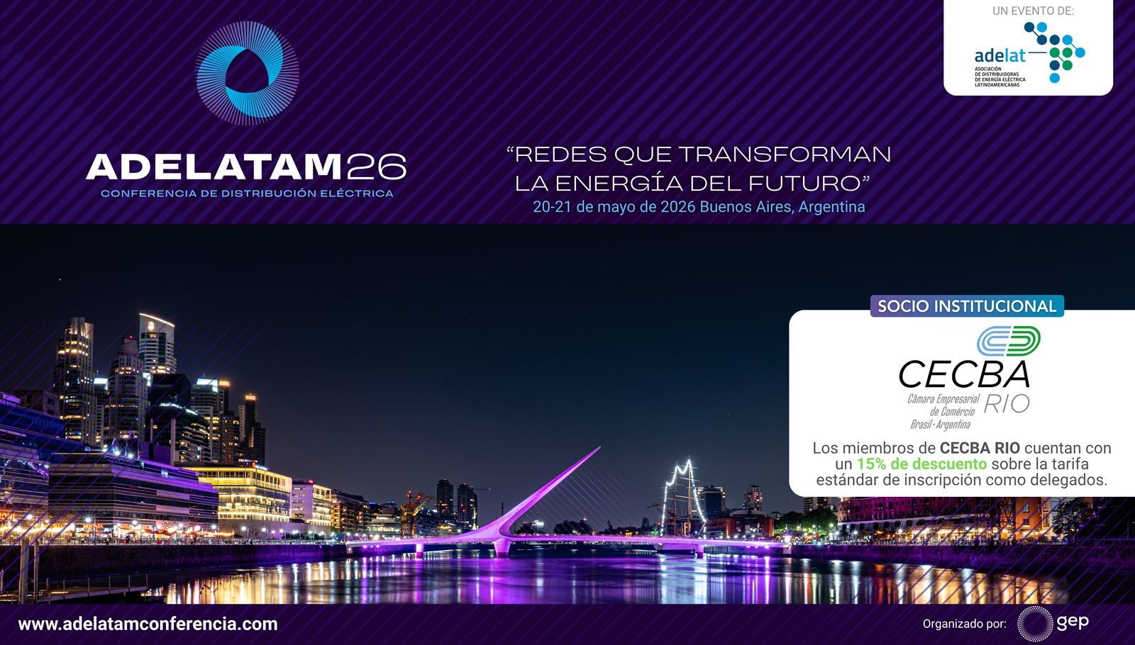 Nos complace contar con la participación de Câmara Empresarial de Comércio Brasil - Argentina - CECBA RIO como Socio Institucional de Adelatam 2026, que se celebrará los días 20 y 21 de mayo de 2026 en Buenos Aires, Argentina.